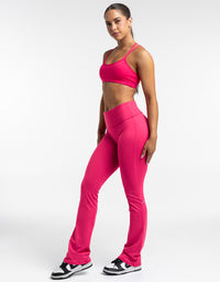 Fold Over Flare Leggings - Bright Pink