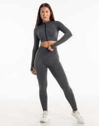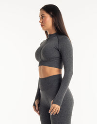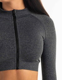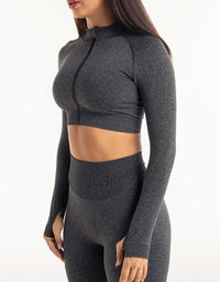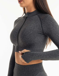 League Cropped Zip-Up - Charcoal