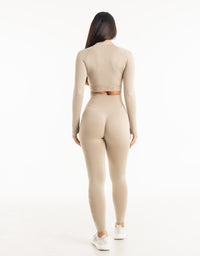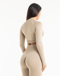 League Cropped Zip-Up - Taupe Grey